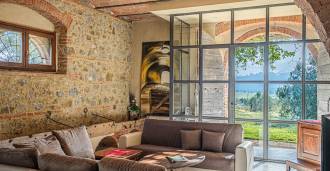 Sisätilojen 600 m2 on sisustettu hienostuneella maulla. Ensimmäisessä kerroksessa on tilava olohuone takalla, suuri keittiö ja makuuhuone kylpyhuoneella. Toisessa kerroksessa on viihtyisä oleskelutila ja viisi tyylikästä makuuhuonetta neljällä kylpyhuoneella, joista on näkymät ympäröiville kukkuloille ja viinitarhoille.