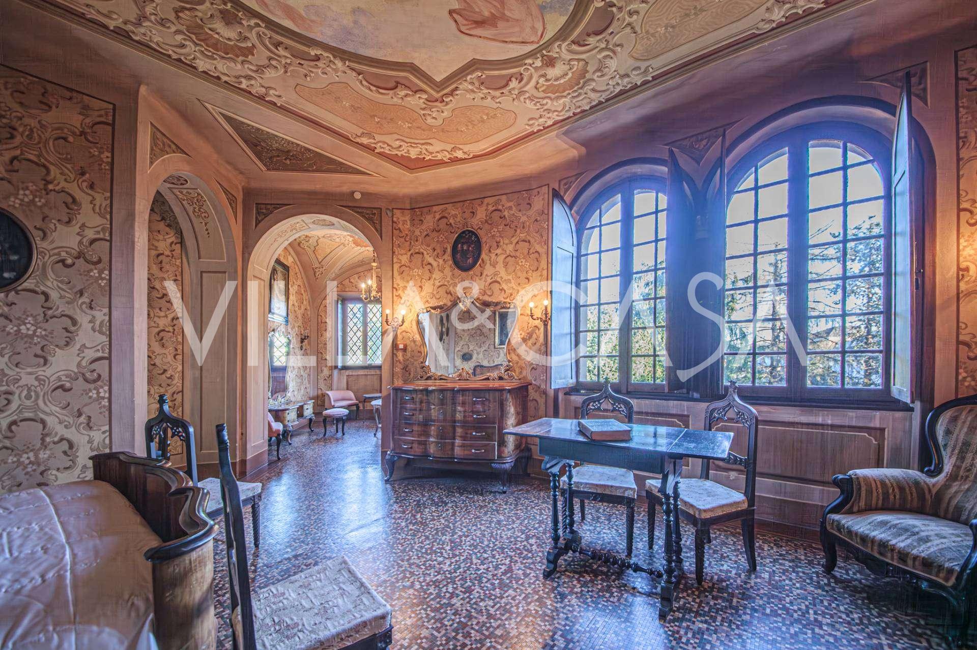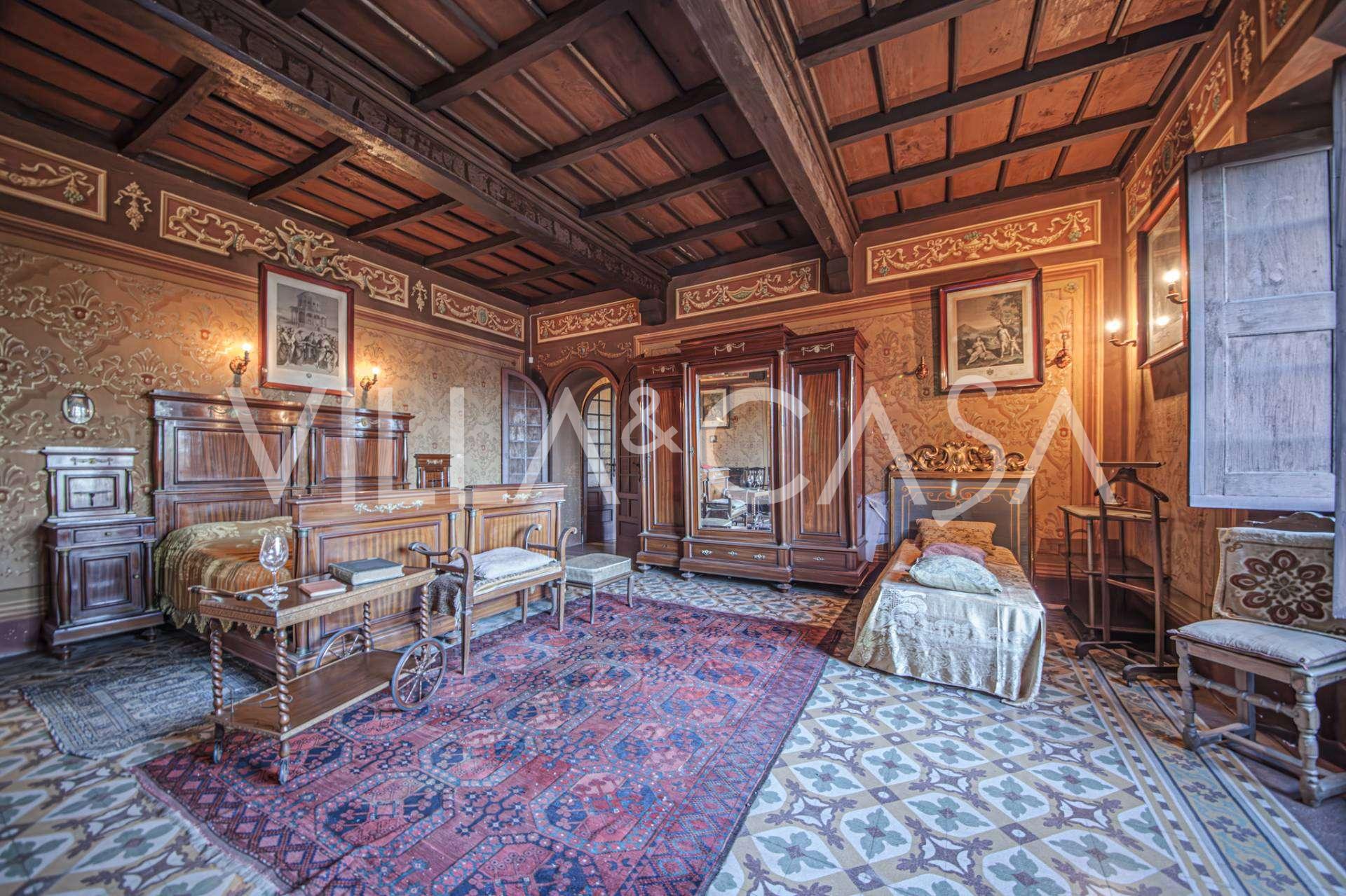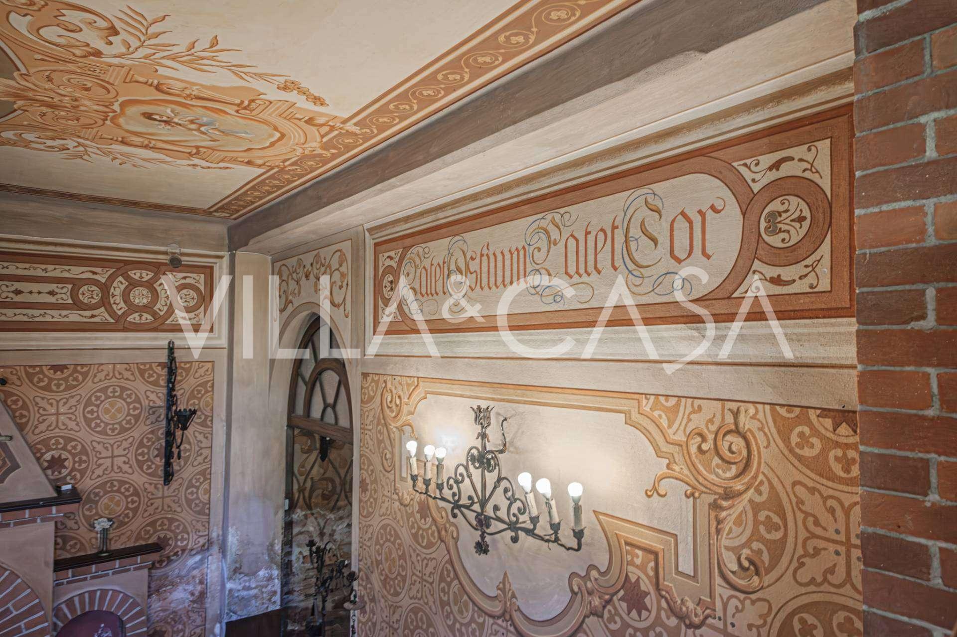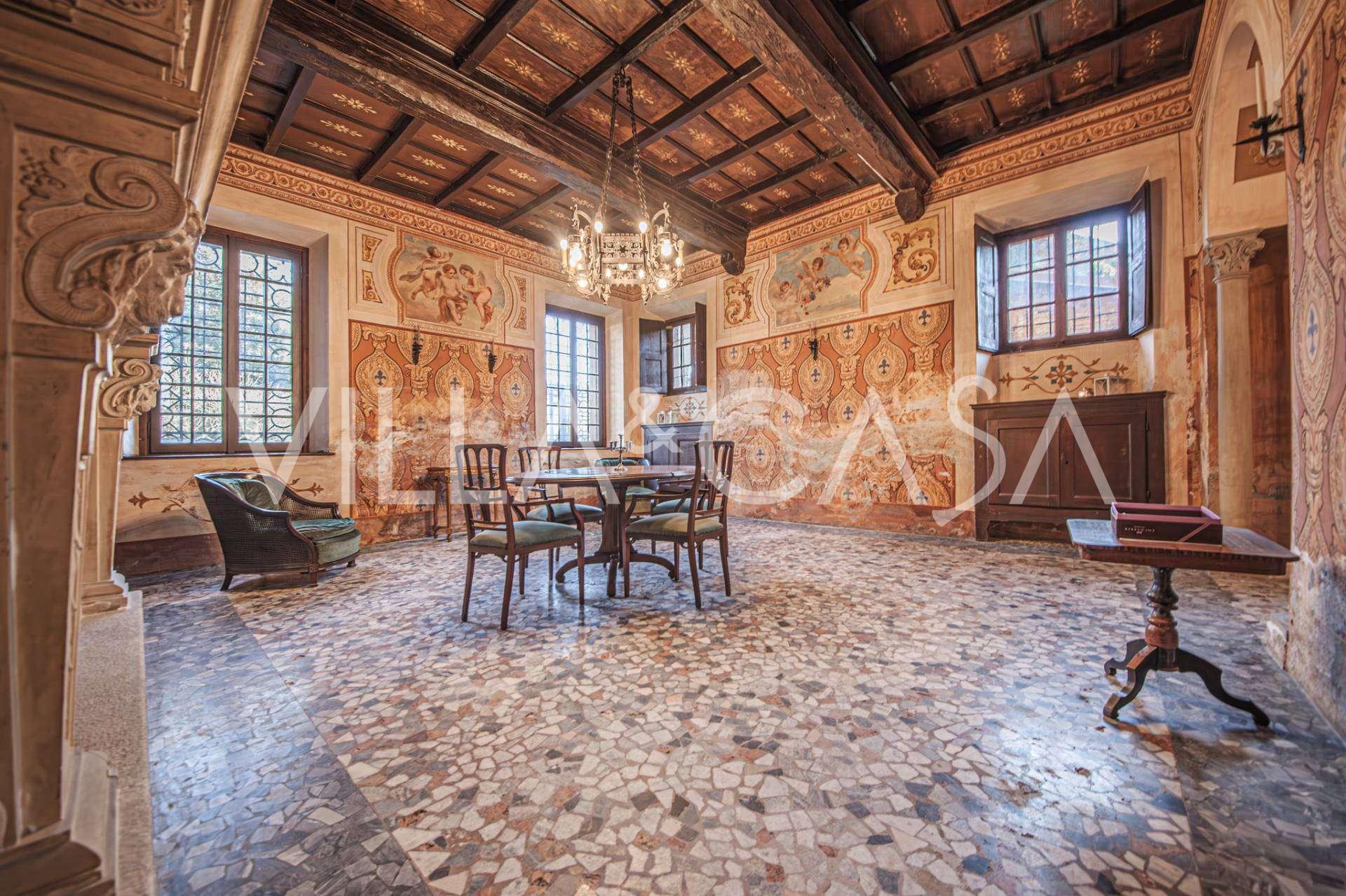 Linnan sisätilat hämmästyttävät vieraita muinaisen suuruuden ilmapiirillä: huoneet, joissa on takkoja ja freskoja, vanha aula maalauksineen ja tyylikäs portaikko, joka johtaa yläkertaan huoneistoihin. Alakerrassa sijaitsevat olohuoneet, torniin perustuva työhuone, ruokasali, keittiö ja vieras-wc, ja terassilta avautuu näkymä puutarhaan.