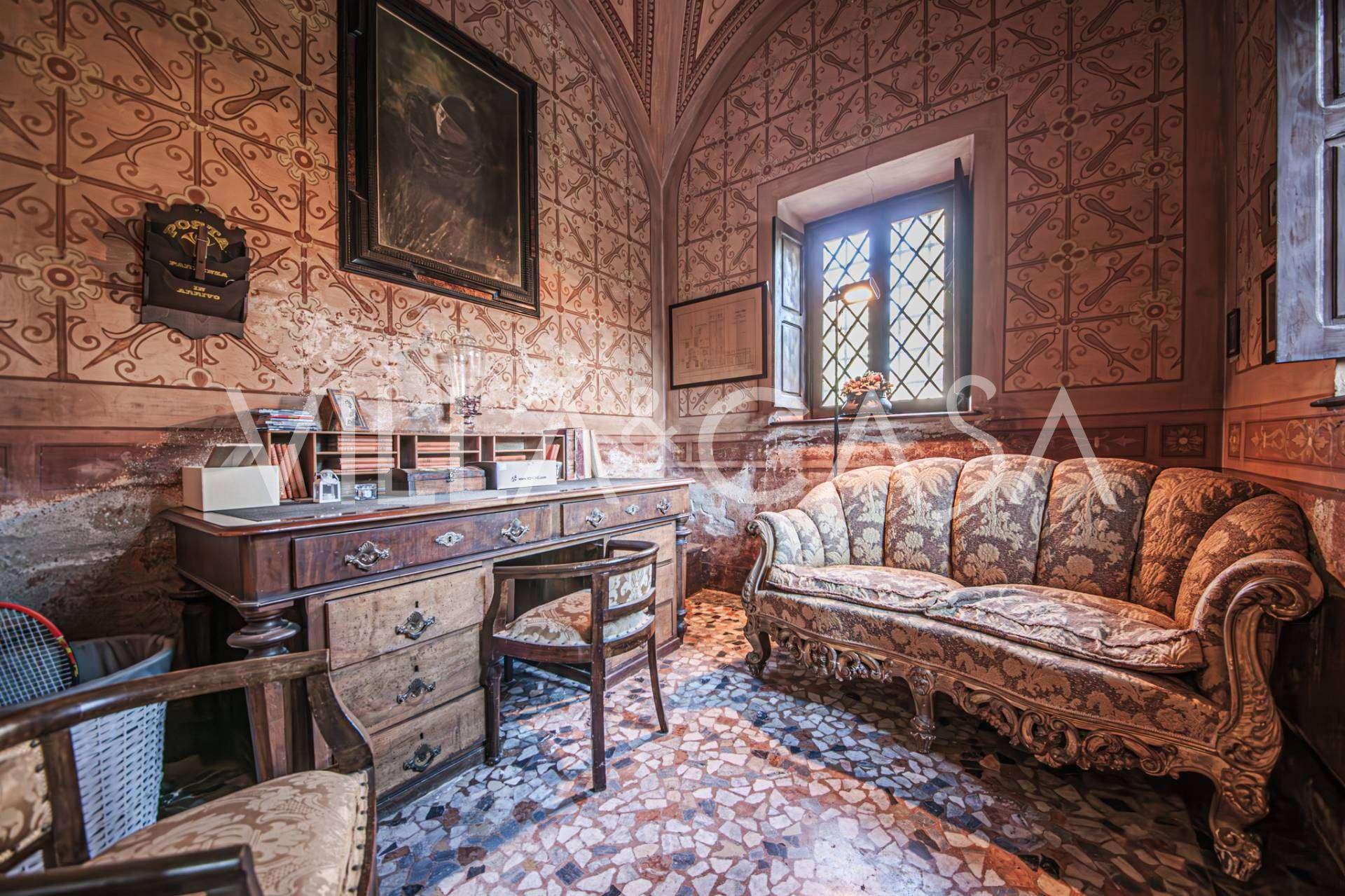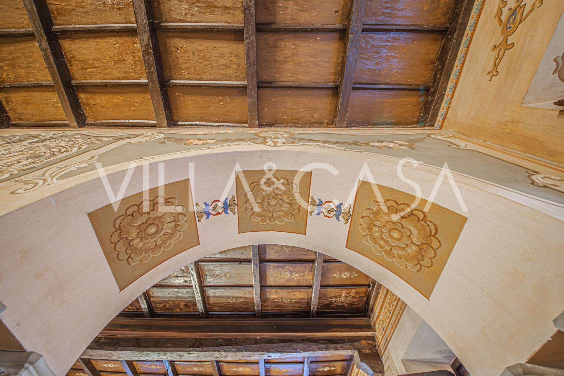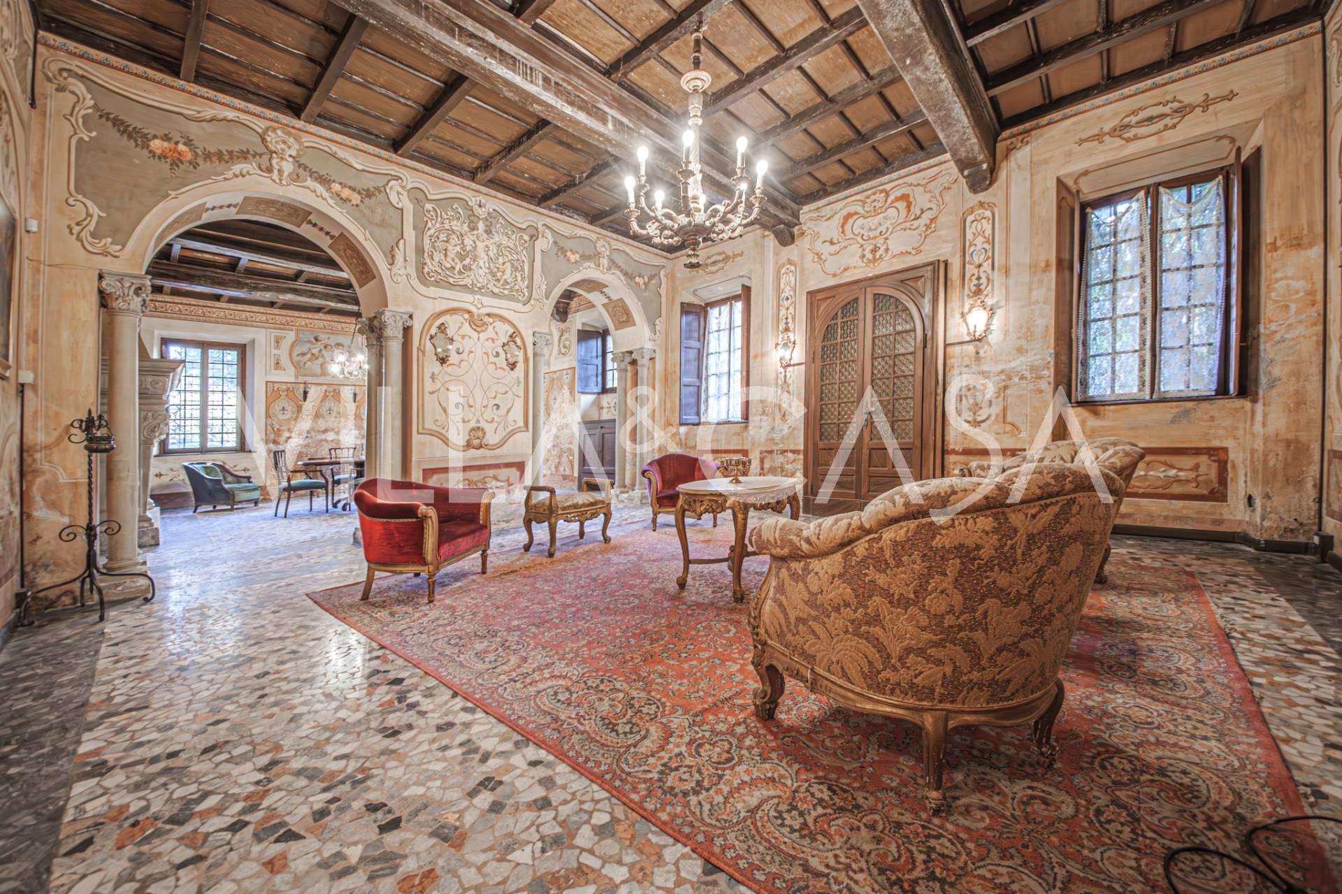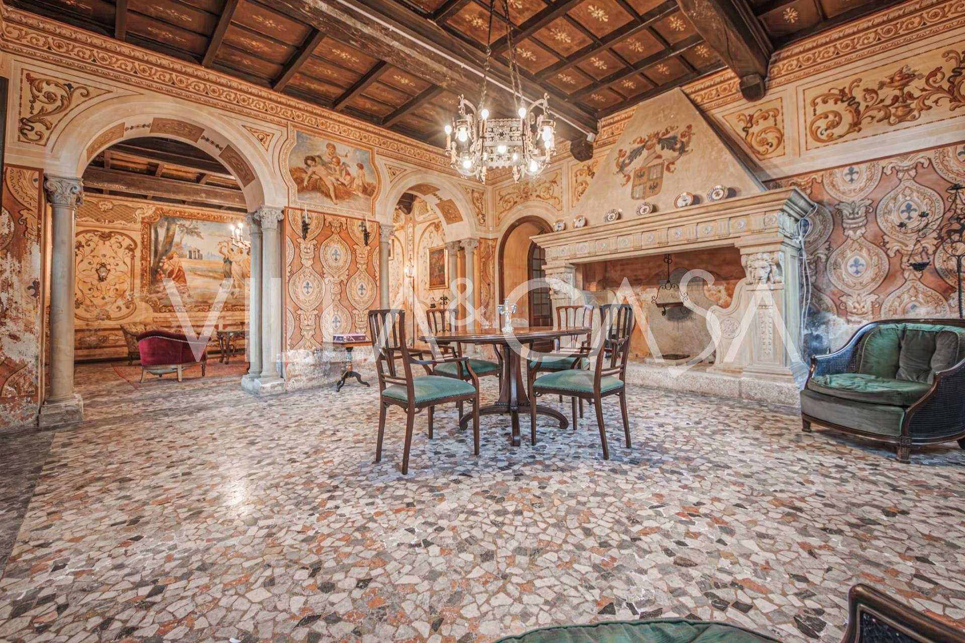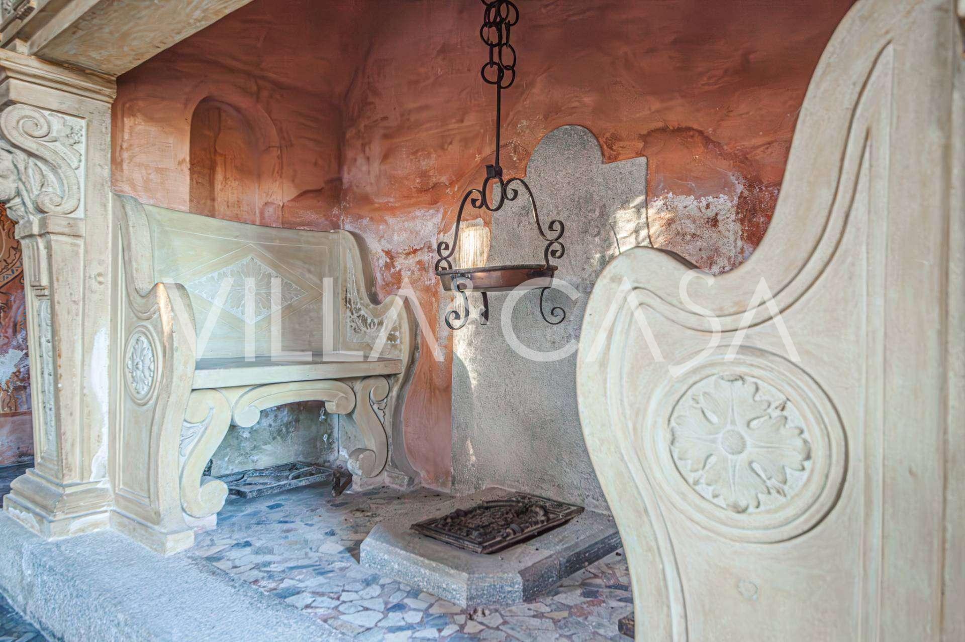 Linnan sisätilat hämmästyttävät vieraita muinaisen suuruuden ilmapiirillä: huoneet, joissa on takkoja ja freskoja, vanha aula maalauksineen ja tyylikäs portaikko, joka johtaa yläkertaan huoneistoihin. Alakerrassa sijaitsevat olohuoneet, torniin perustuva työhuone, ruokasali, keittiö ja vieras-wc, ja terassilta avautuu näkymä puutarhaan.
