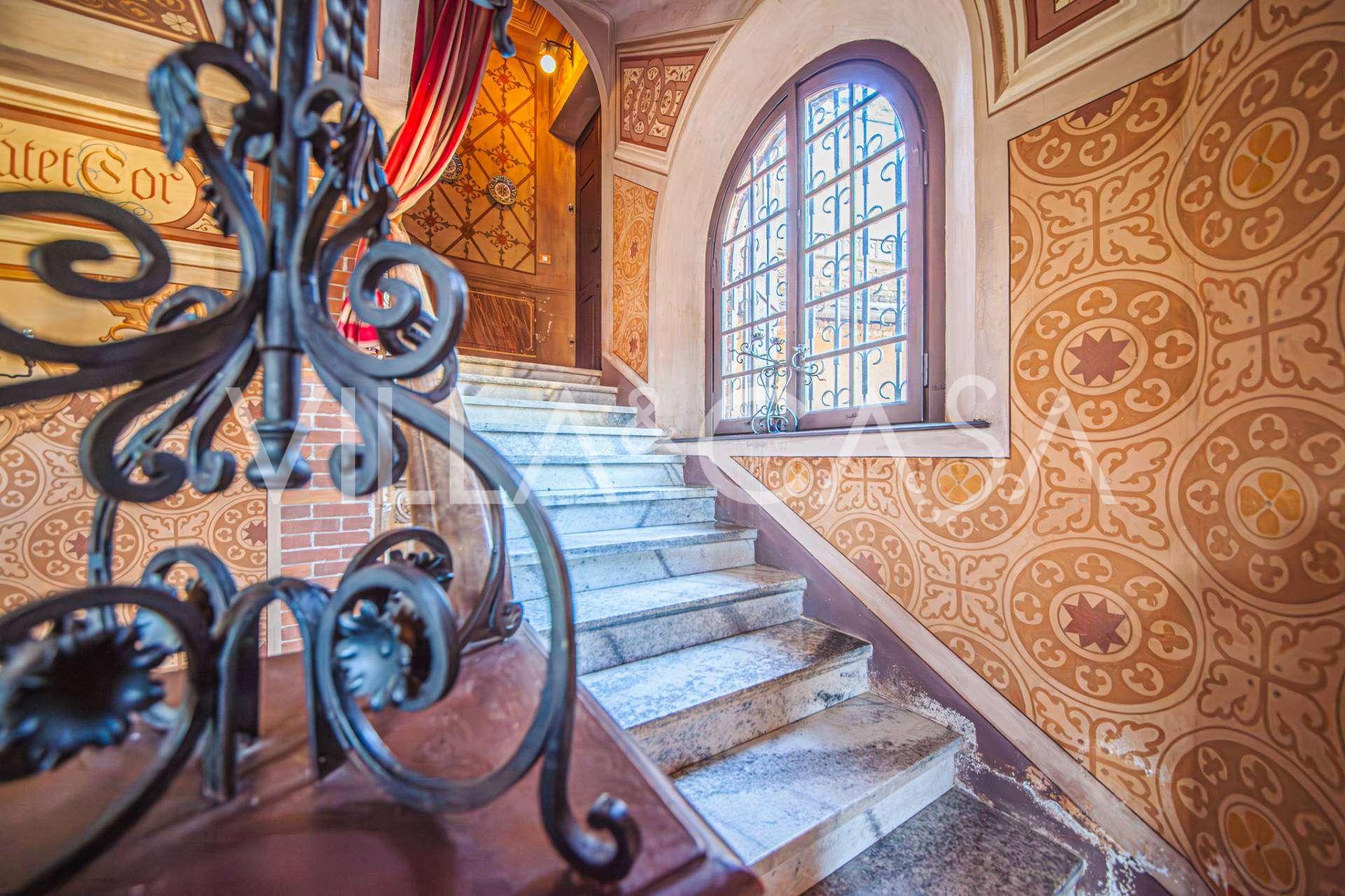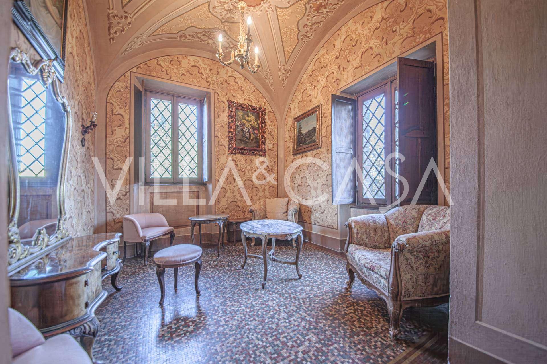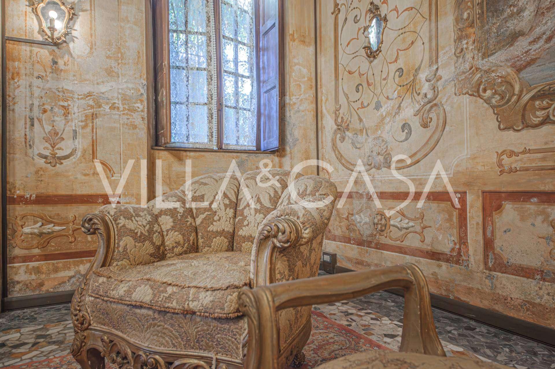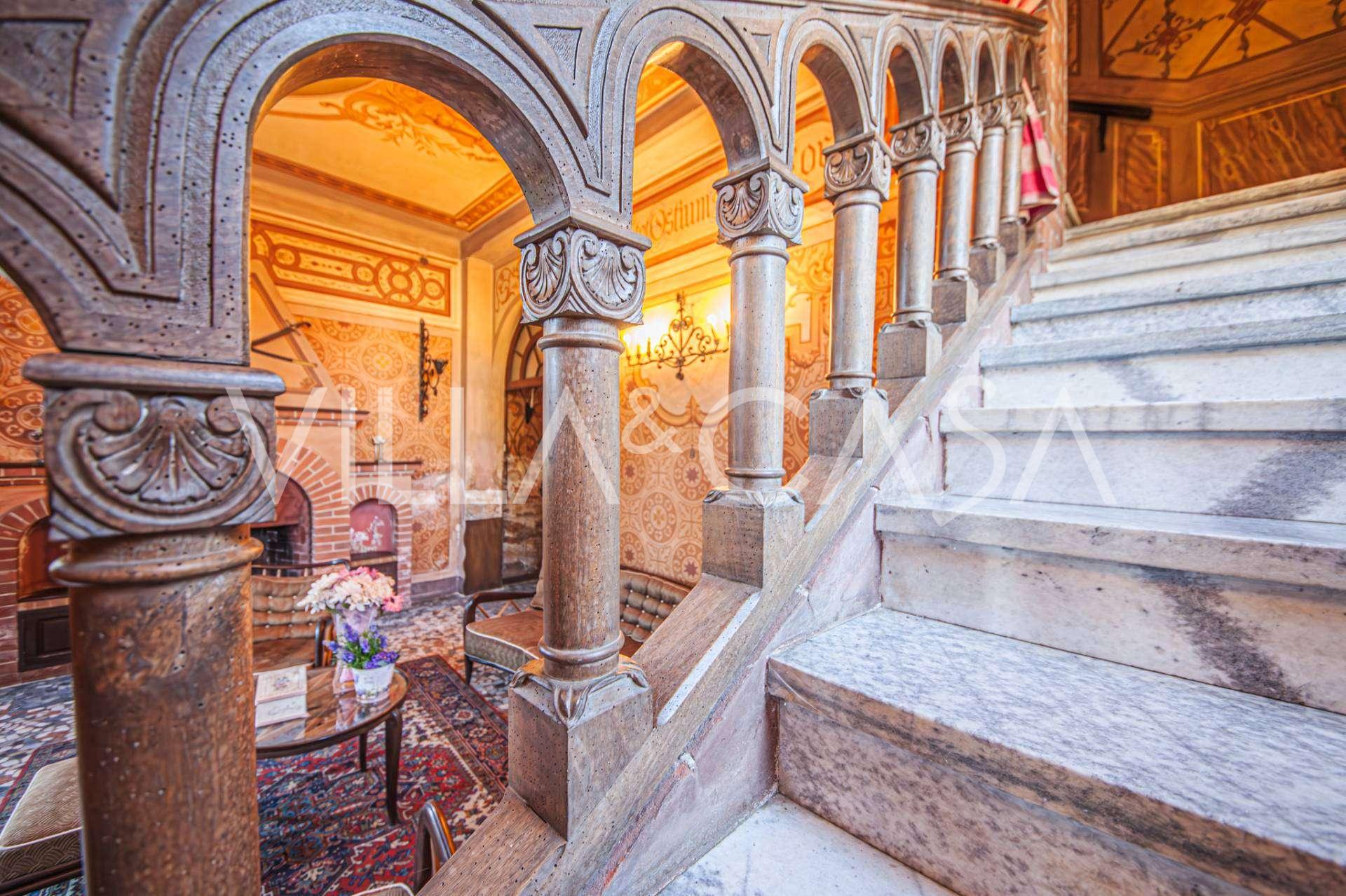 Linnan sisätilat hämmästyttävät vieraita muinaisen suuruuden ilmapiirillä: huoneet, joissa on takkoja ja freskoja, vanha aula maalauksineen ja tyylikäs portaikko, joka johtaa yläkertaan huoneistoihin. Alakerrassa sijaitsevat olohuoneet, torniin perustuva työhuone, ruokasali, keittiö ja vieras-wc, ja terassilta avautuu näkymä puutarhaan.