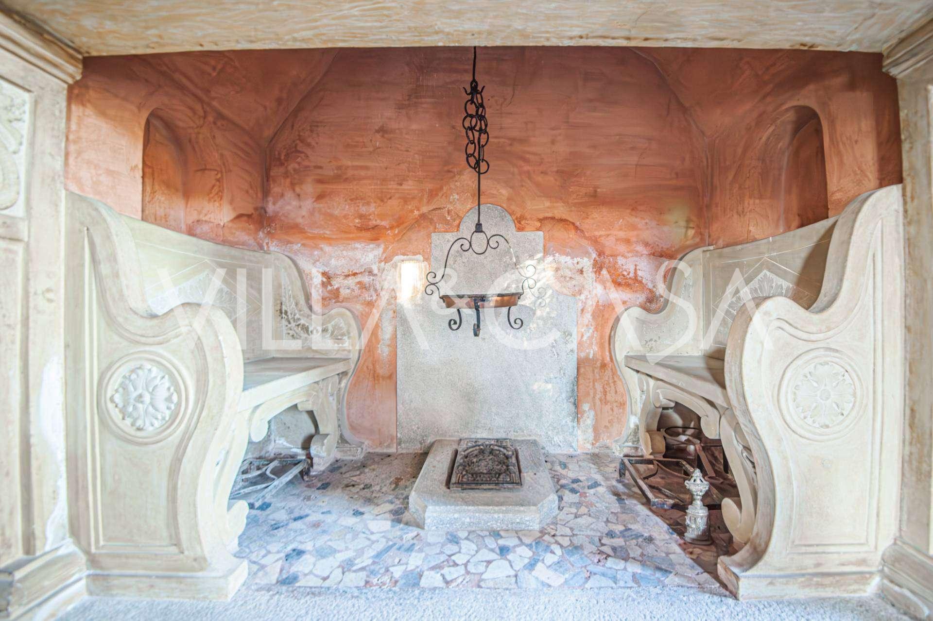 Linnan sisustus on tehty hienostuneessa klassisessa tyylissä: luonnonpuu, alkuperäiset freskot, tiiliseinät, terrazzo ja taottu rauta luovat hienostuneen harmonian, joka heijastaa vanhojen piemontelaisten kartanoiden henkeä ja tunnelmaa.
