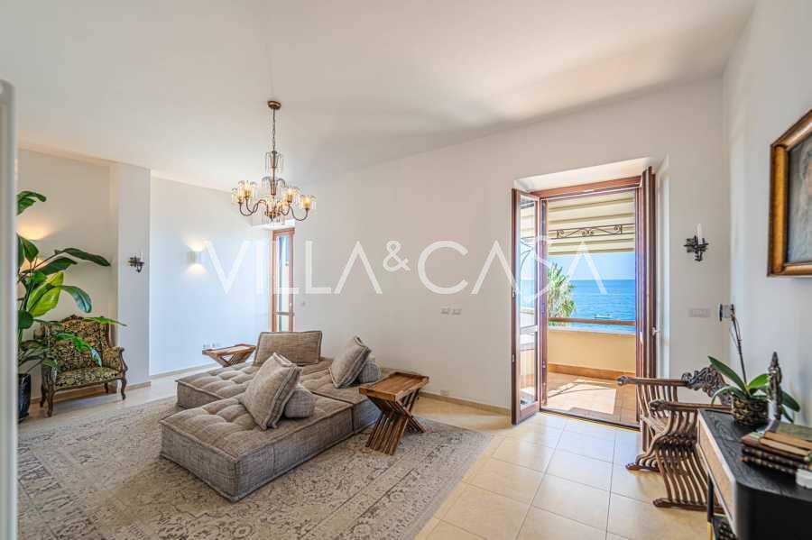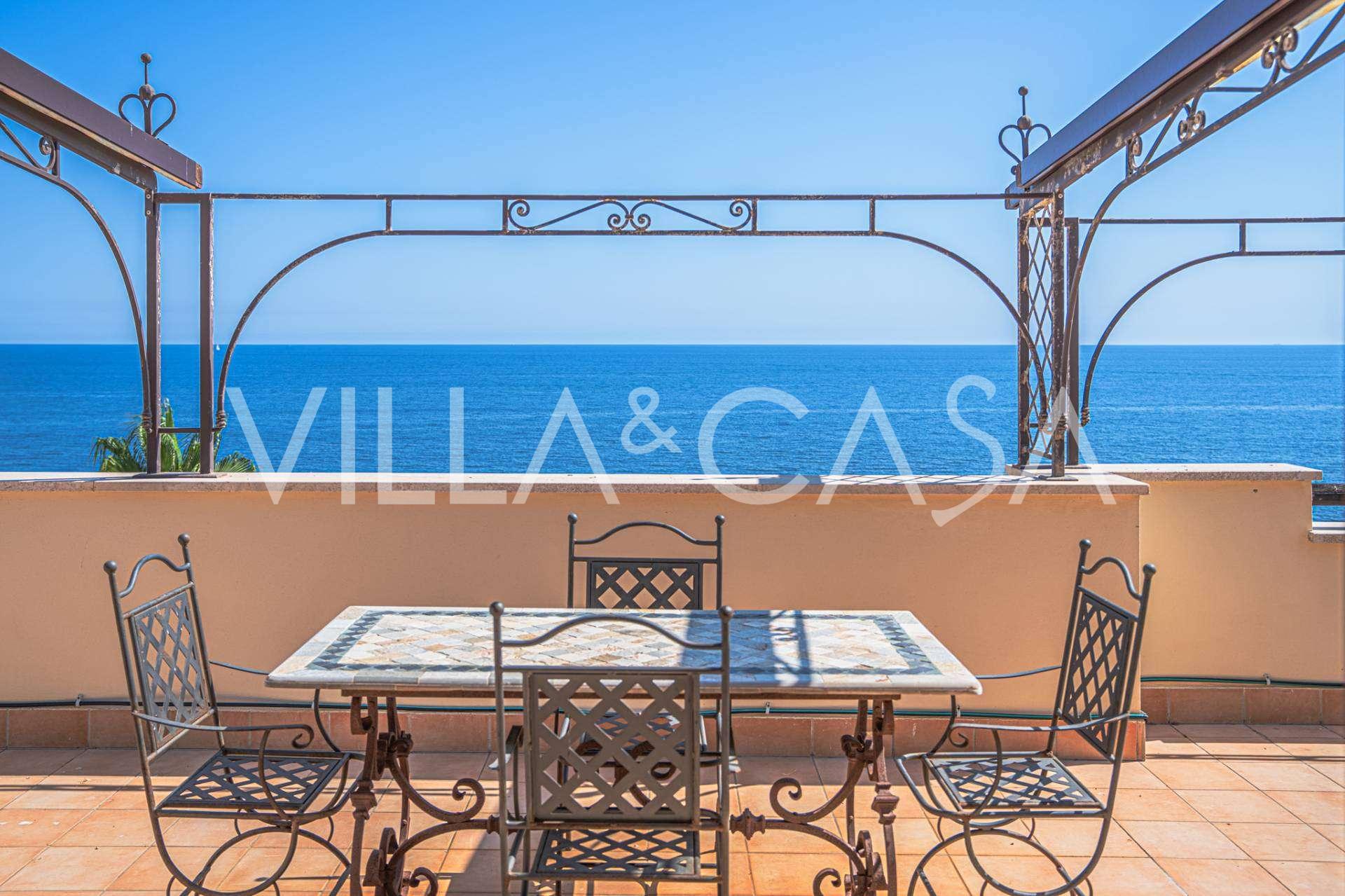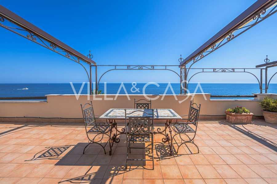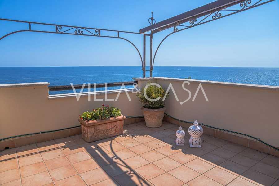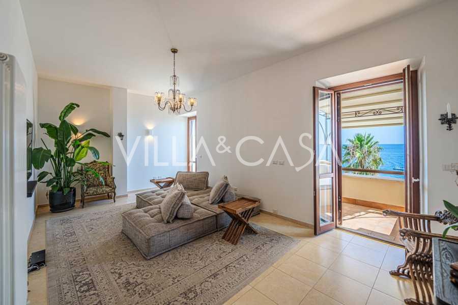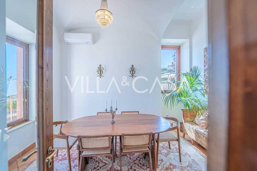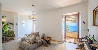 Tyylikäs asunto, joka on taitavasti entisöity, yhdistää alkuperäisen arkkitehtonisen viehätyksen korkealuokkaiseen moderniin viimeistelyyn. Ikkunat tarjoavat 180 asteen panoraamanäkymän merelle, ja sininen horisontti täyttää jokaisen sisätilan ulottuen laajoille panoraamaterasseille. Sisätilat, joissa on yli kolmen metrin korkuiset katot, aikakauden terrakottalattiat, marmorinen portaikko ja takka, luovat hienostuneen, ajattoman eleganssin ilmapiirin.