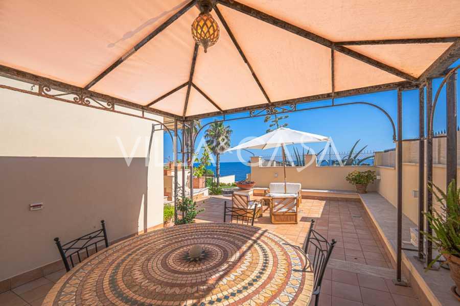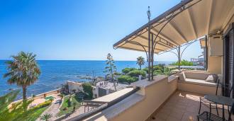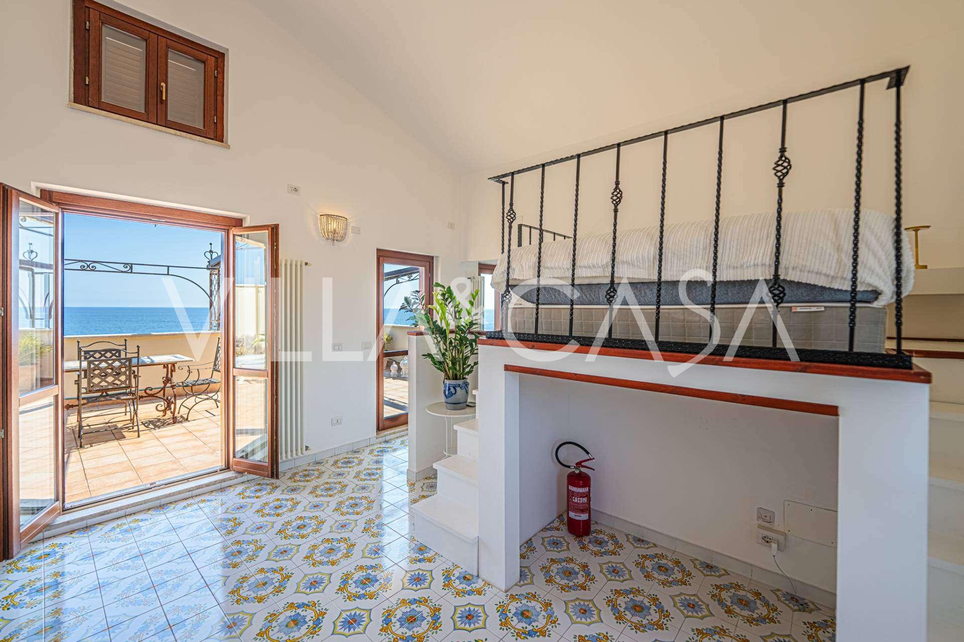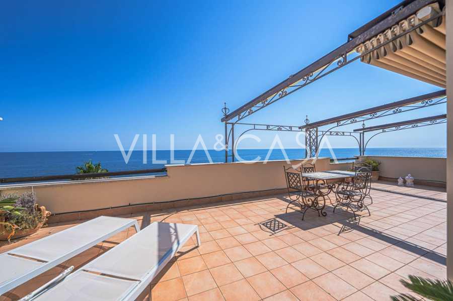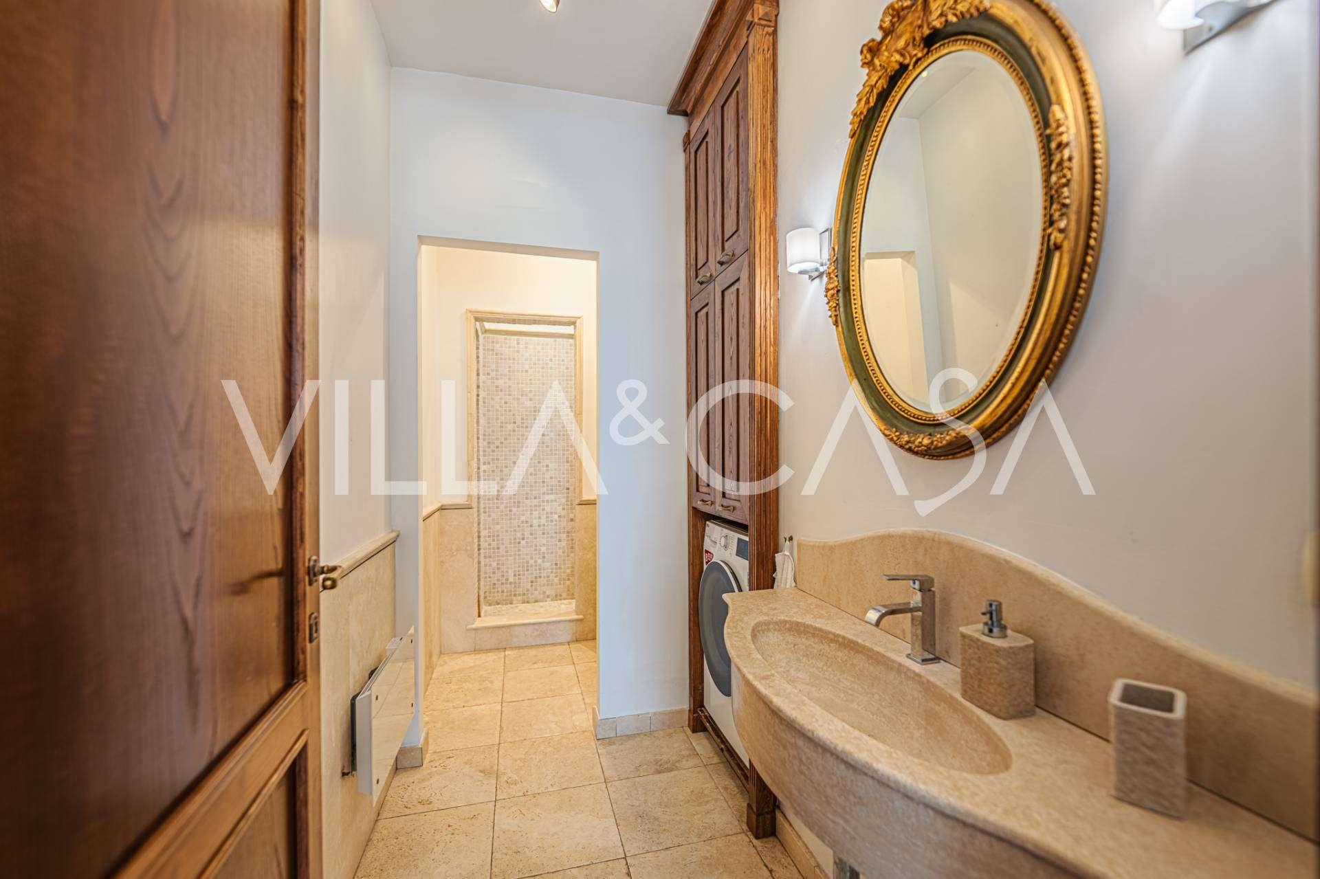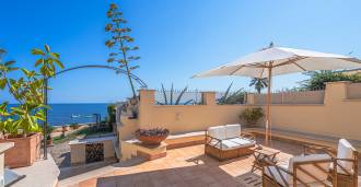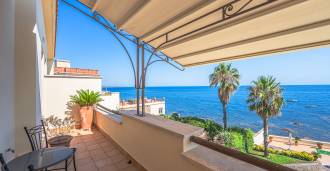 Tyylikäs asunto, joka on taitavasti entisöity, yhdistää alkuperäisen arkkitehtonisen viehätyksen korkealuokkaiseen moderniin viimeistelyyn. Ikkunat tarjoavat 180 asteen panoraamanäkymän merelle, ja sininen horisontti täyttää jokaisen sisätilan ulottuen laajoille panoraamaterasseille. Sisätilat, joissa on yli kolmen metrin korkuiset katot, aikakauden terrakottalattiat, marmorinen portaikko ja takka, luovat hienostuneen, ajattoman eleganssin ilmapiirin.
