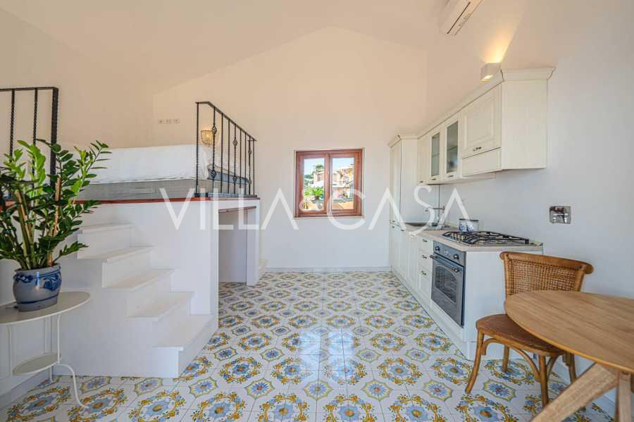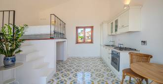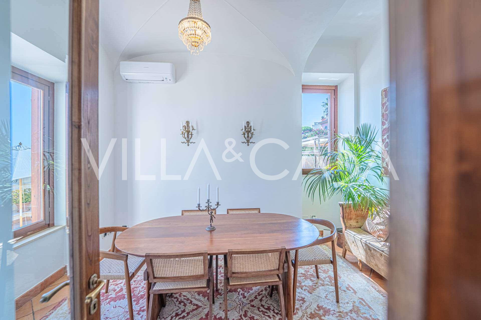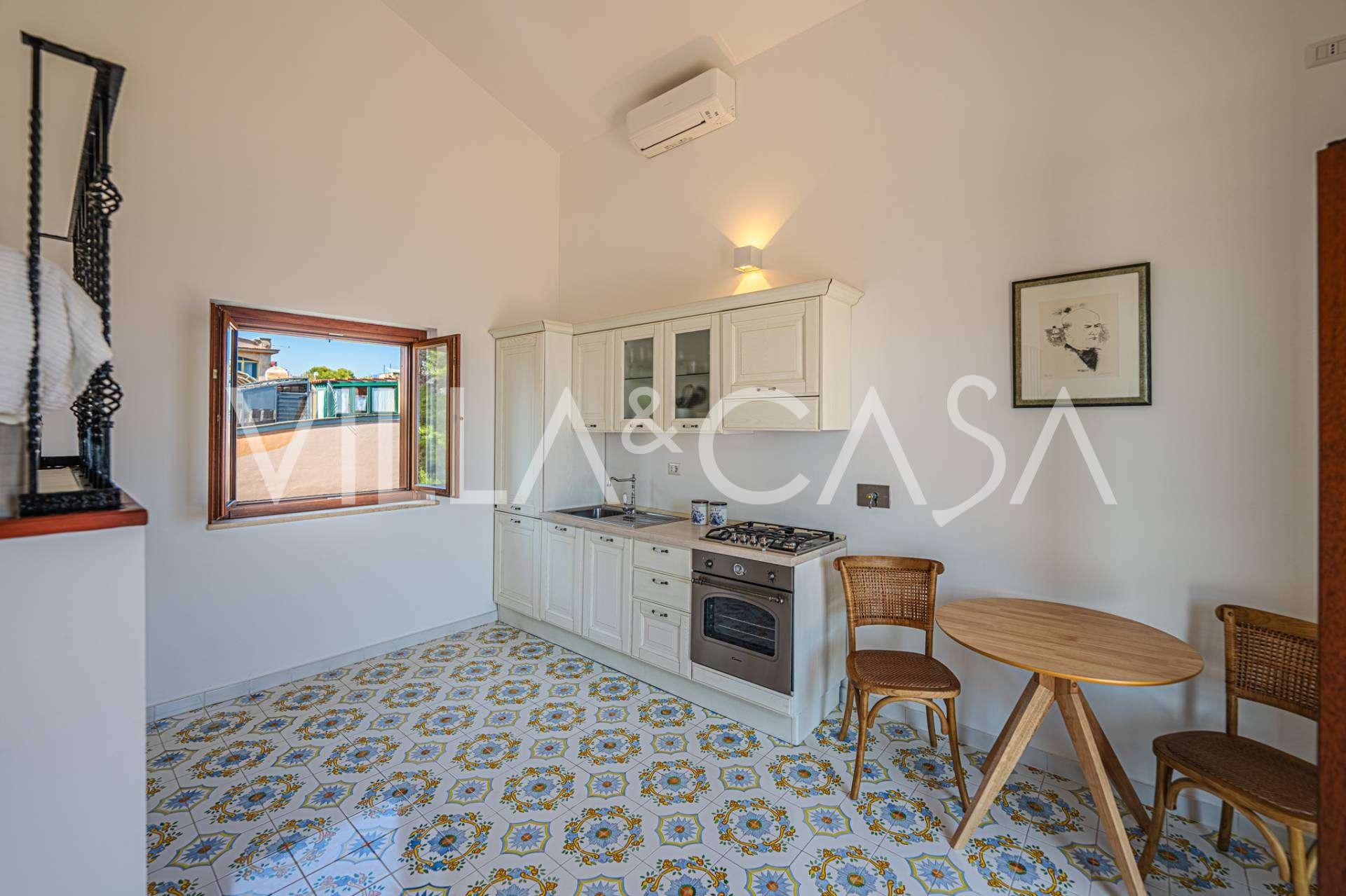 Pääolohuone, jota koristavat suuret ikkunat, avautuu terassille, joka on täydellinen seurusteluun ja harvinaisten auringonlaskujen ihailuun. Käsintehty mittatilauskeittiö yhdistää estetiikan ja toiminnallisuuden, saarekkeella, joka on koristeltu Positanon maalatulla laatalla ja alkuperäisillä kuparialtailla.