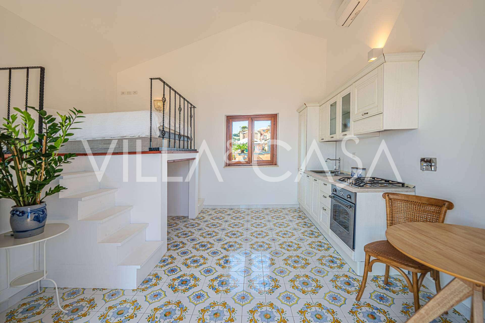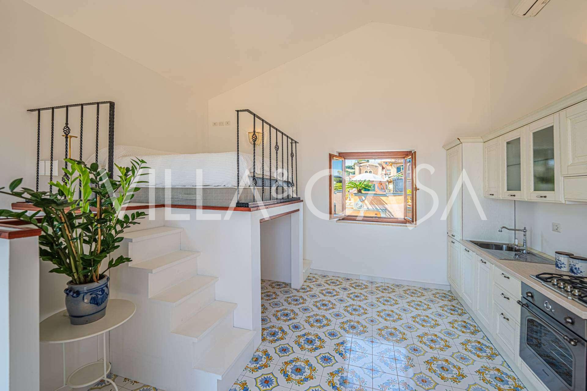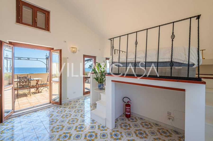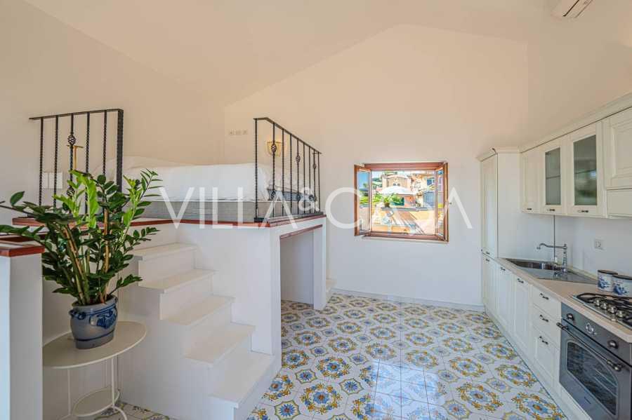Pääolohuone, jota koristavat suuret ikkunat, avautuu terassille, joka on täydellinen seurusteluun ja harvinaisten auringonlaskujen ihailuun. Käsintehty mittatilauskeittiö yhdistää estetiikan ja toiminnallisuuden, saarekkeella, joka on koristeltu Positanon maalatulla laatalla ja alkuperäisillä kuparialtailla.