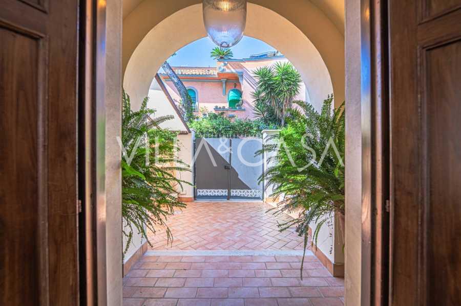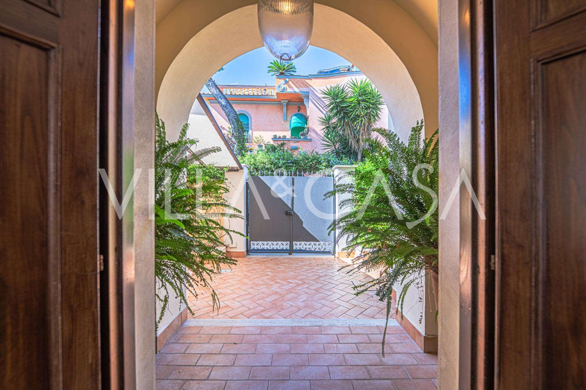 Santa Marinellan rannikon yhdellä arvostetuimmista alueista, kadulla, jolla on rikas historia, sijaitsee tämä upea 1900-luvun alun huvila, josta on näkymät Välimerelle. Asunto käsittää hienostuneen paritalon yhden osan, mutta tarjoaa täydellisen itsenäisyyden erillisen sisäänkäynnin, noin 800 neliömetrin yksityisen puutarhan ja suoran yksityisen pääsyn rannalle ansiosta, mikä on harvinaista Lazion rannikolla.