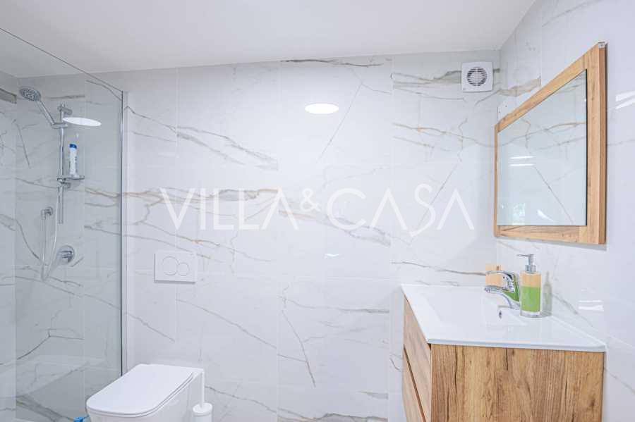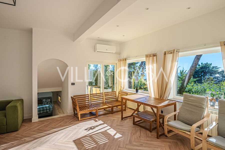 Huvilan alue on vehreyden ympäröimä: hyvin hoidettu puutarha koristekasveineen ja kukkineen, ulkoilma-oleskelualue sekä yksityinen pysäköintialue kolmelle autolle. Äskettäinen kunnostus on lisännyt taloon moderniutta ja raikkautta, säilyttäen samalla välimerellisen eleganssin.