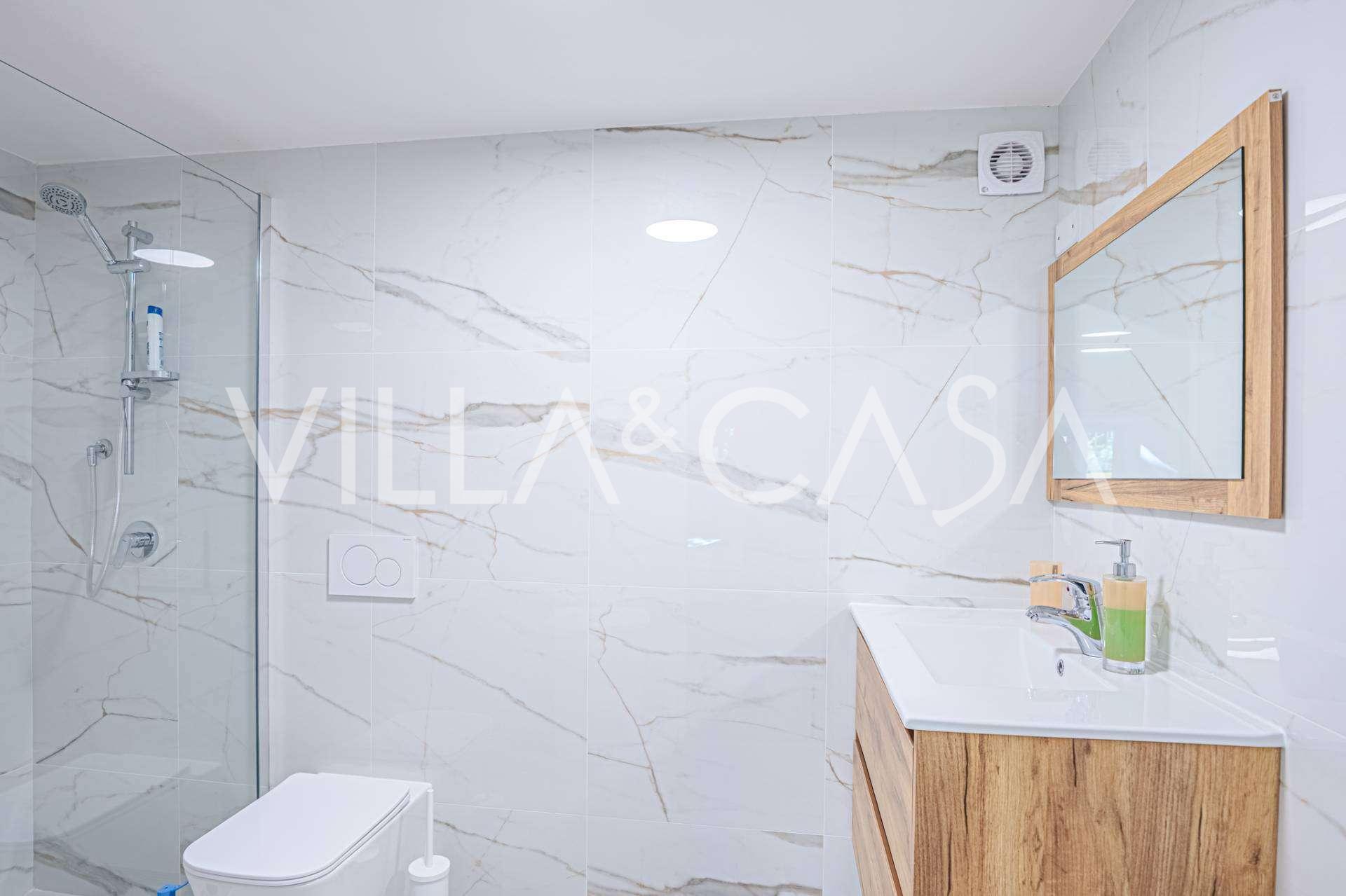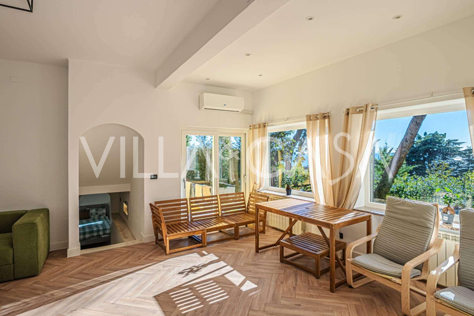 Huvilan alue on vehreä: hyvin hoidettu puutarha koristekasveineen, ulkoilma-alue ja yksityinen pysäköintitila kolmelle autolle. Äskettäinen kunnostus on lisännyt taloon modernia viehätystä säilyttäen Välimeren tyylin aitouden.
