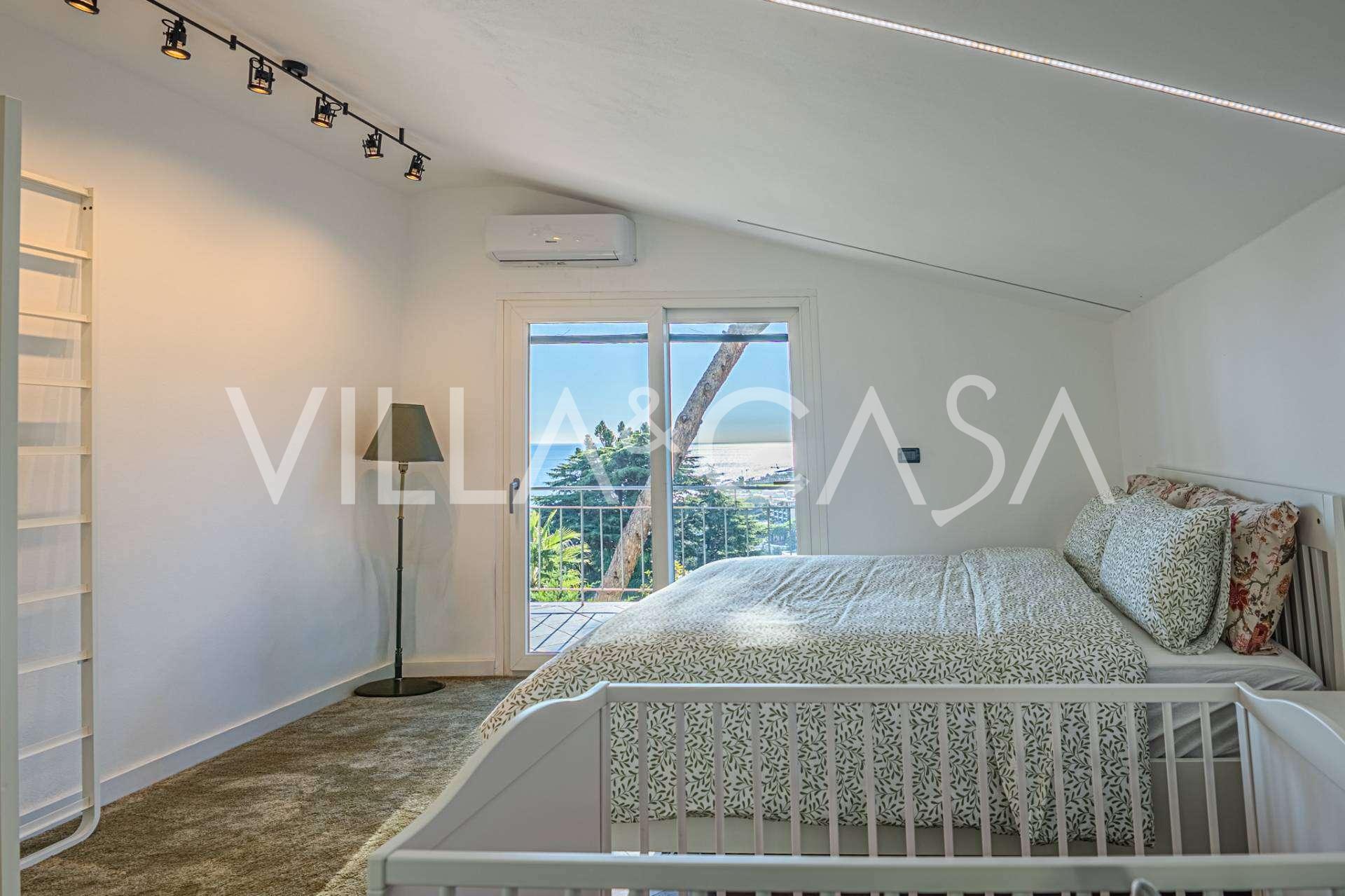 Yläkerta muodostaa yksityisalueen, jossa on kaksi tilavaa makuuhuonetta, joista kummastakin on käynti terassille, josta on upeat panoraamanäkymät. Aamunkoit ja iltarusko, jotka heijastuvat Ligurian meren vesiin, luovat rauhan ja romantiikan ilmapiirin.