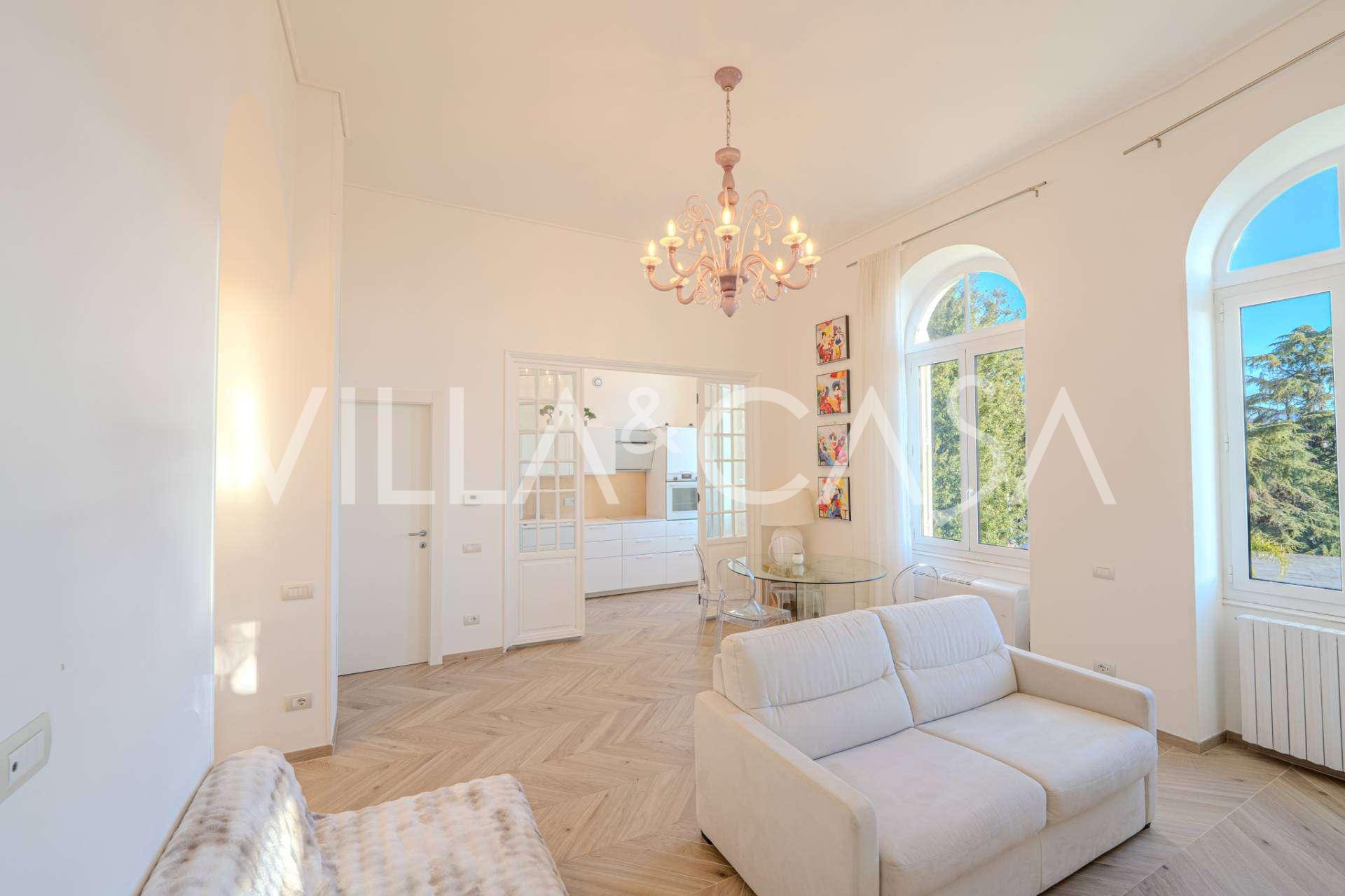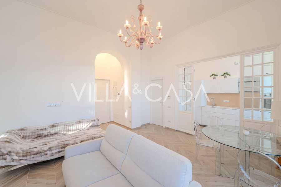 Vuokrattavana on kaksihuoneisto Sanremossa, 73 m2, merinäköalalla. Se sijaitsee rakennuksen toisessa kerroksessa, jossa on hissi, ja siihen kuuluu olohuone, parvekkeellinen makuuhuone, keittiö ja kylpyhuone. Huoneisto on erinomaisessa kunnossa, varustettu uusilla ikkunoilla, ilmastoinnilla, parkettilattioilla ja itsenäisellä lämmityksellä. Täysin kalustettu. Vuokrahintaan sisältyy paikka autotallissa. Kohde sijaitsee suljetussa asuinkompleksissa, jossa on uima-allas, puutarha, oleskelualue ja grillauspaikka. Kaupungin keskustaan ja merenrantaan on vain 7 minuutin kävelymatka.