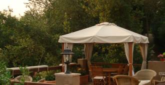 Kolme makuuhuonetta, kolme kylpyhuonetta, vaatehuoneet, sisäpiha.